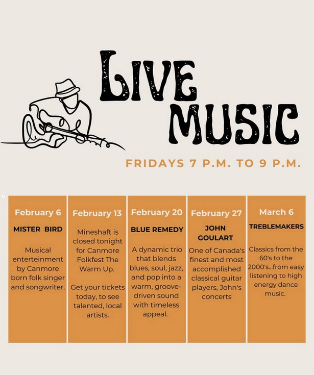 February has arrived, and we have an outstanding live music calendar for you this month! Check out the schedule and be sure to join us for some unforgettable performances in Canmore.