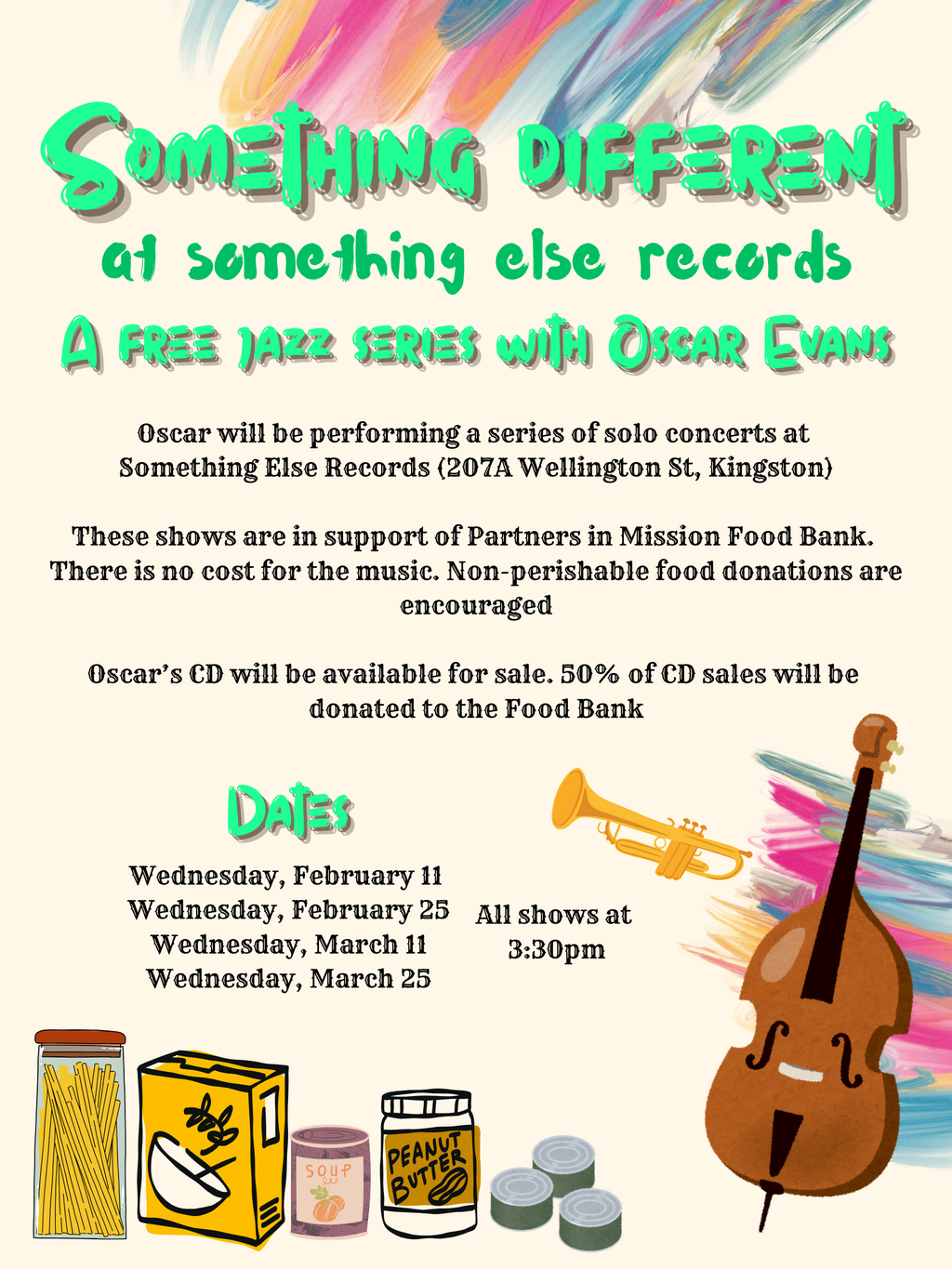 Free Jazz Series in Support of Partners in Mission Food Bank: Oscar Evans @ Something Else Records Feb 11 2026 - Mar 23rd @ Something Else Records